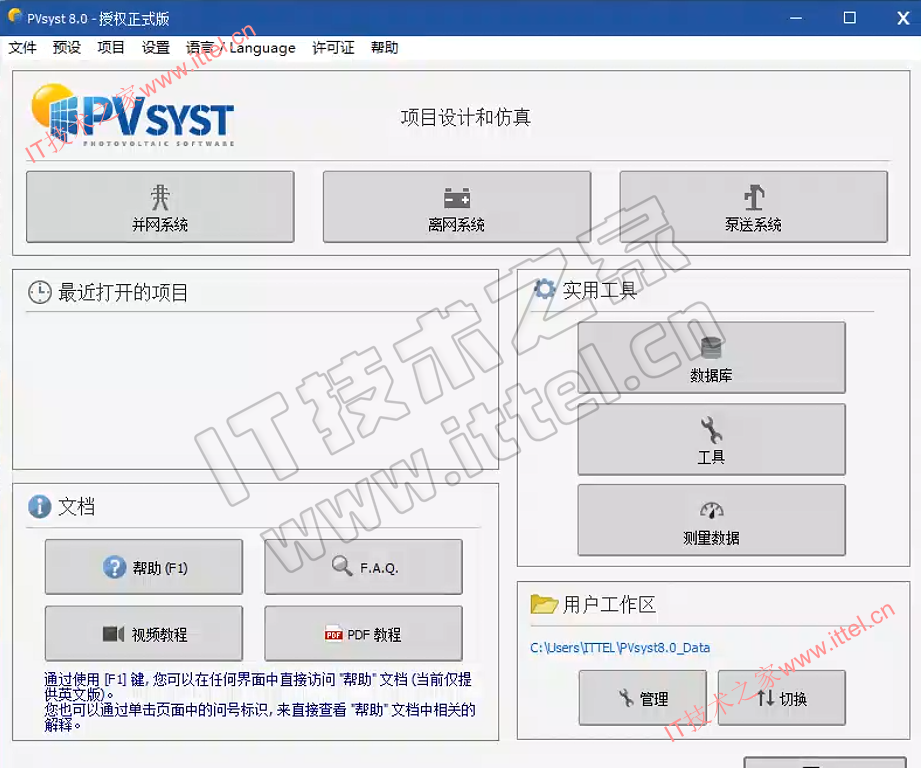 PVsyst 是一款世界领先的光伏系统设计工具,可以帮助用户轻松完成光伏系统的设计工作,对于光伏行业的朋友非常适用。整个软件功能布局非常清晰,工作区简洁直观,提供了并网系统,数据库,泵送系统,测量数据的等功能,可以满足用户很多的需要。不仅可以设计光伏系统,也支持水泵等系统的设计工作,适合多种不同的工程人员进行使用。