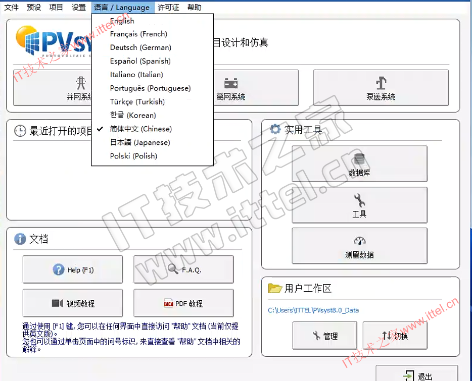 - 系统设计:快速设计并网、离网或泵用光伏系统。该程序指导您选择组件以确定项目规模。