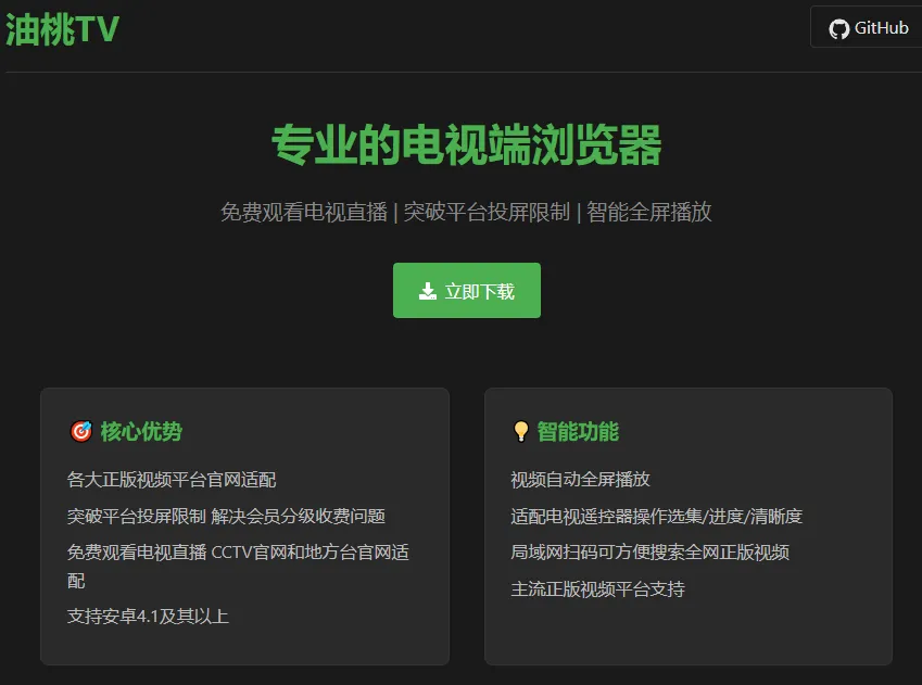 就有开发者据此开发制作了一款开源全自动电视浏览器,只需要将 APP 安装到电视上,就能通过浏览器自动打开央视网并全屏播放电视节目,因为不涉及违规内容,理论上能长期使用。