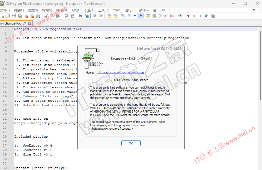 如果外部修改(或删除)Notepad++已开启文件,用户将会被通知更新文件内容(或删除档案)。