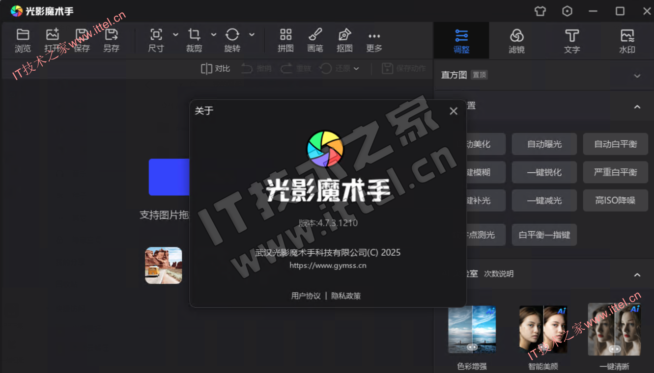 光影魔术手(NeoImaging)是一款功能强大的图片编辑软件,它提供了多种图片处理功能,加水印、调整图片尺寸、改变图片颜色模式(如将彩色照片转变为黑白,再通过特定操作恢复彩色)、添加花样边框以及曲线和色阶调整等。