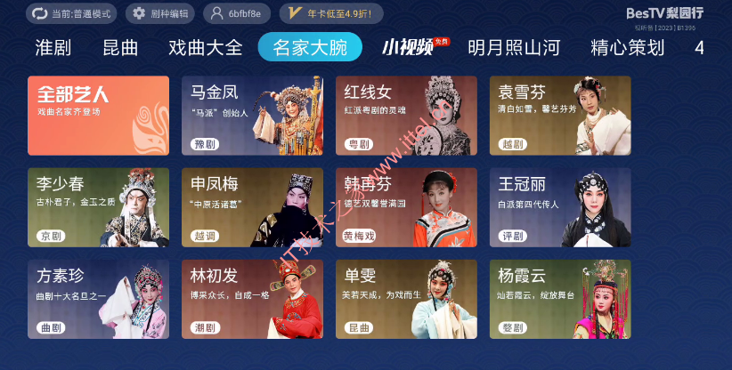 剧种齐全,还可以筛选名家大碗,手机电视都能用。
