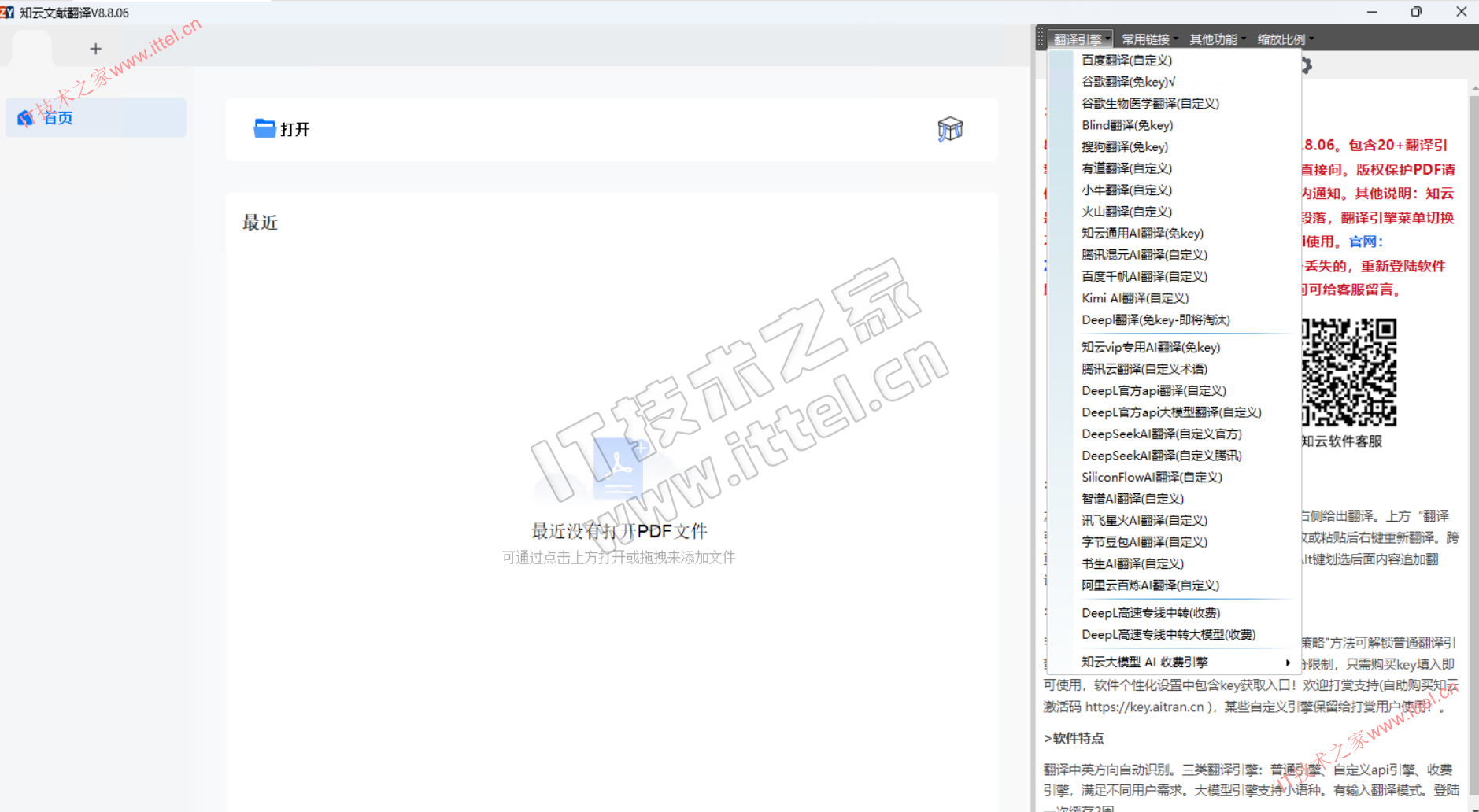 - 翻译引擎里【免KEY】的可以直接使用,其余需要添加自定义key使用。