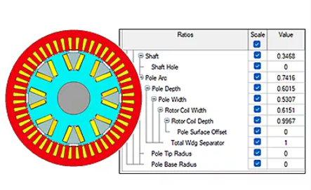 针对绕线转子同步电机(WRSM: Wound Rotor Synchronous Machine)的增强型比率基模型可以在设计空间探索时调查各种几何变体。这对于大规模参数解析和设计调查是必不可少的,并且是保证模型鲁棒性的强大工具。
