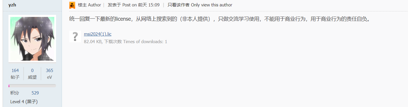 license安装成功,计算报license错误,用文末的msi2024.lic 重新install license即可,感谢@31859提供。