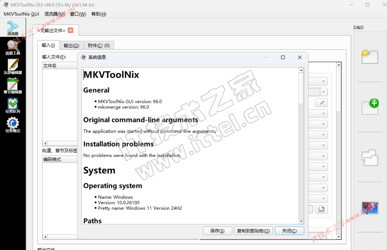 - MKVToolNix GUI:复用器:在“附加选项”中,无论是在“输出”选项卡上的特定轨道选项还是全局选项,都无法指定空(零长度)参数。使用两个连续的单引号或双引号的预期语法时,空参数会被直接跳过。此问题已修复,现在可以在全局“附加选项”中指定例如–title””`,以强制从不写入标题。