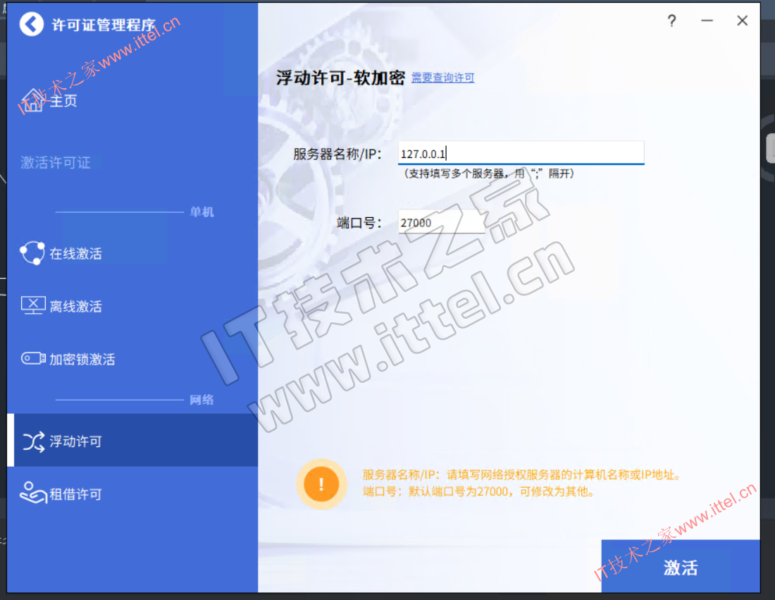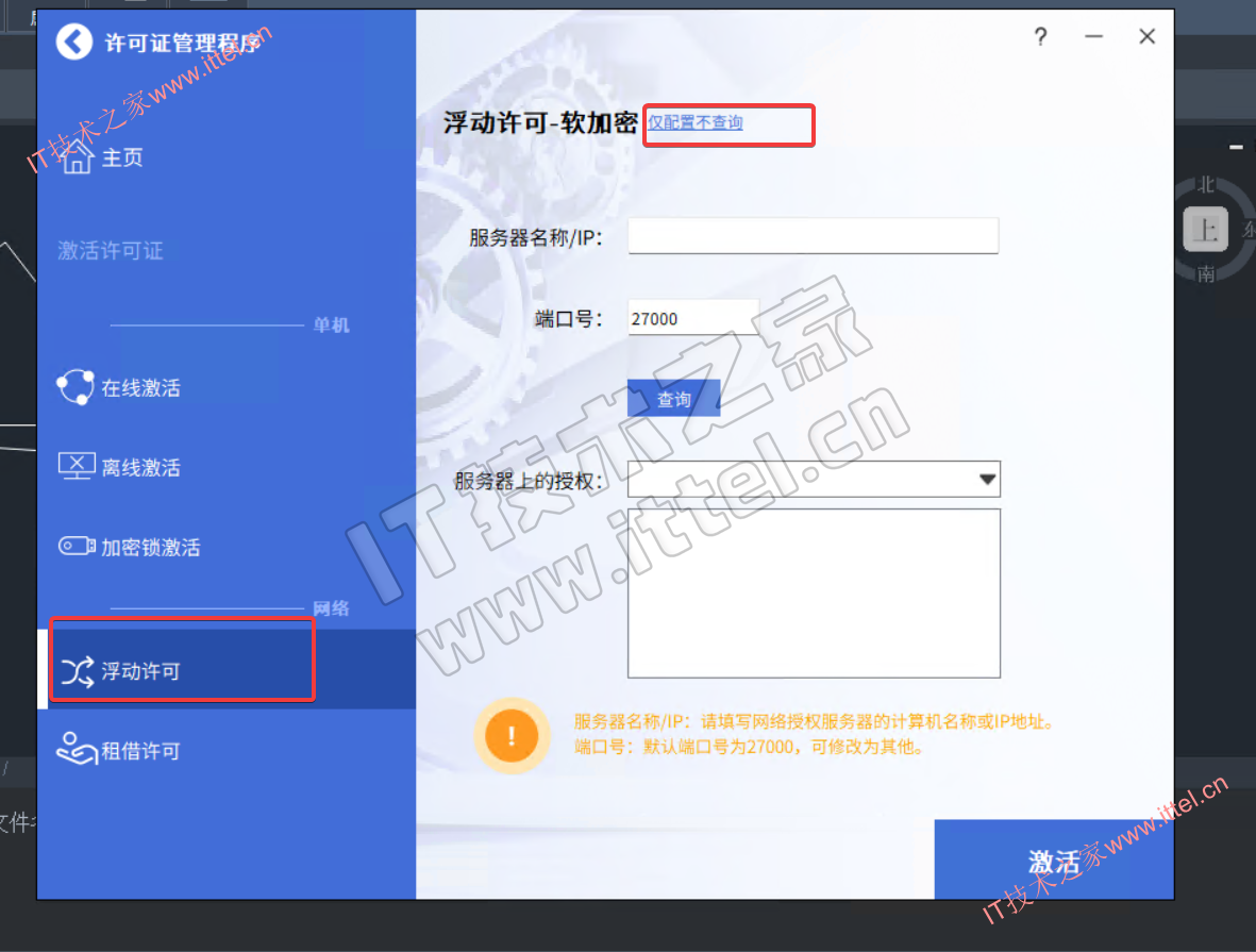 4、点击激活许可证,并选择浮动许可—)仅配置不查询