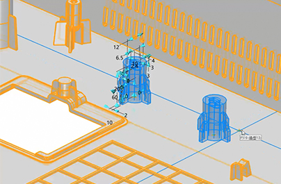 支持智能配对公母唇缘、卡扣卡槽命令,提供12种标准螺丝柱类型,化繁为简,提升塑胶件设计效率。