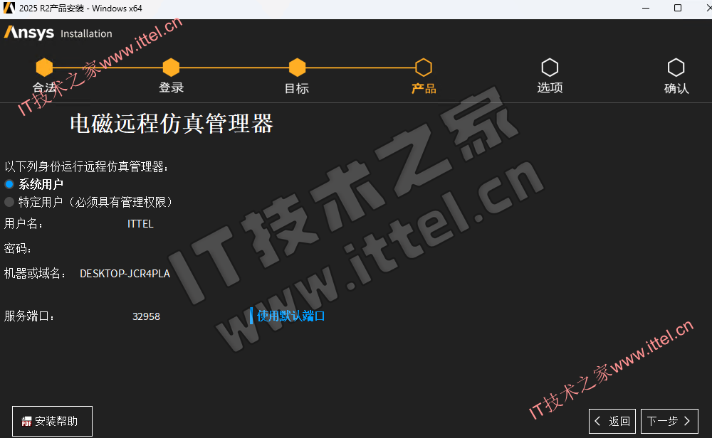- 在配置服务处进行设置,名字设置为ansys-ittel
