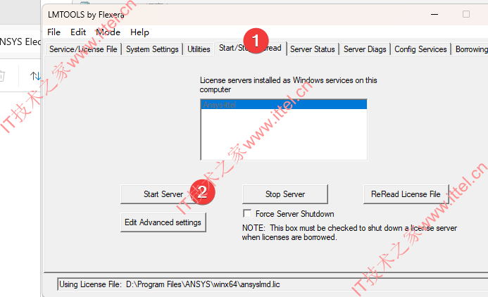 4、在启动停止处进行设置,选择ansys-ittel,然后启动服务