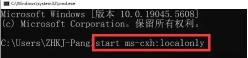 Shift+F10键打开命令行界面,输入下面的命令并回车执行即可: - 在黑色窗口输入【start ms-cxh:localonly】