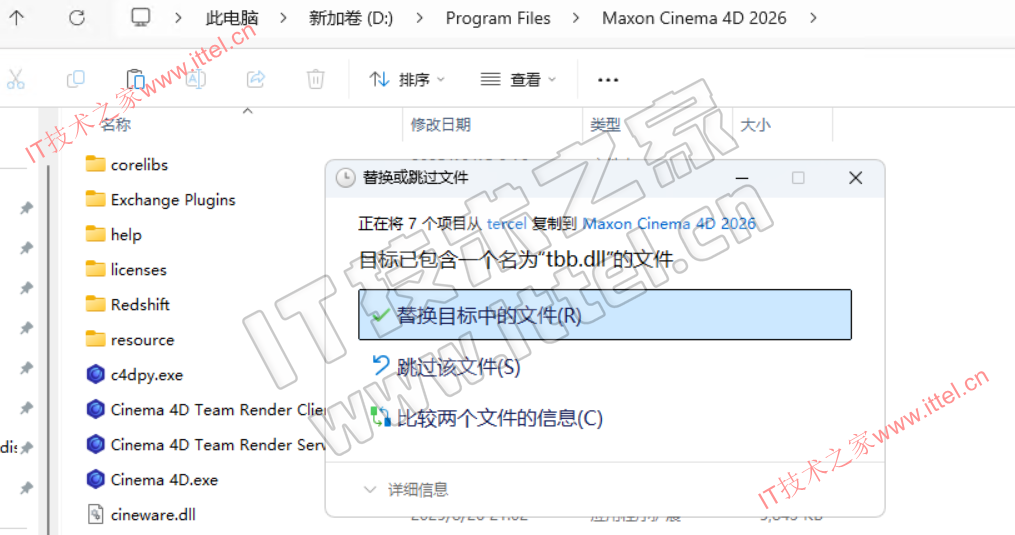 2、打开tercel,复制【resource】到安装目录下替换,这里是:D:\Program Files\Maxon Cinema 4D 2026