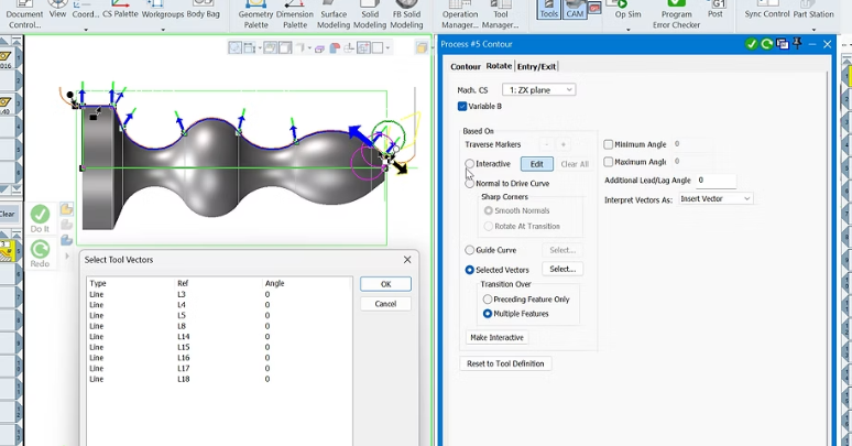 - GibbsCAM 2026用户可以直接沿着切削路径使用控制点定义刀具角度,通过平滑插值对复杂的操作进行精确控制。使得复杂的车削操作更容易设置并且更准确,提高了灵活性和生产力