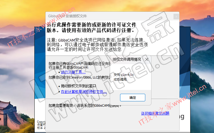 6、运行软件,点击【在此计算机里浏览授权文件】,选择“C”盘中的【Gibbsnet_RLM_Server_15.1.1】里的【client.lic】