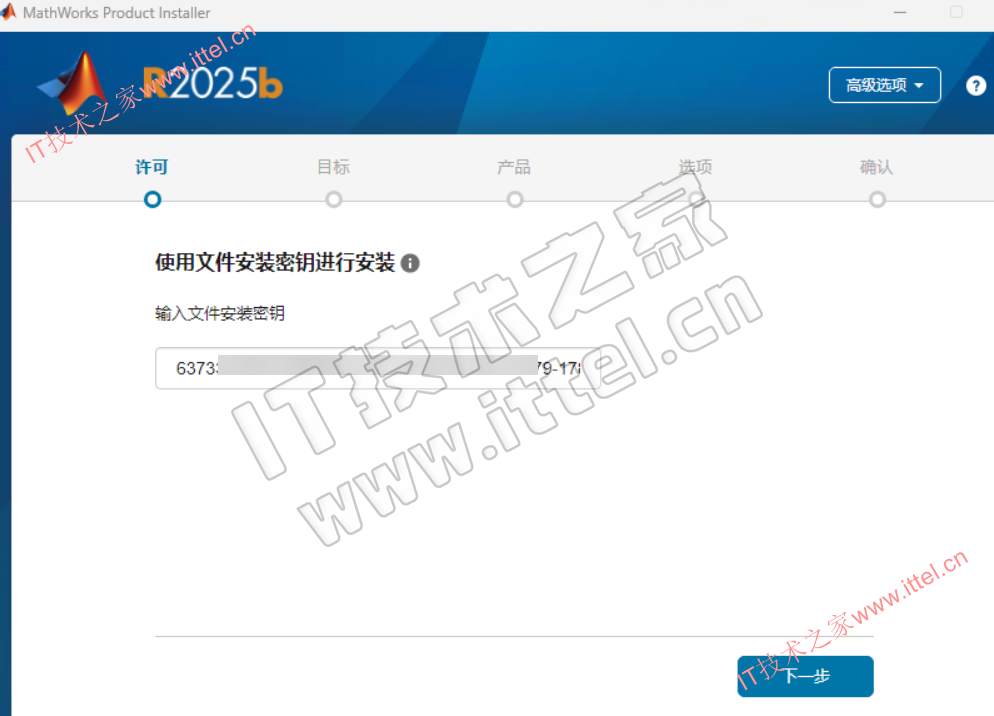 2.输入秘钥(见tercel下的key.txt),下一步