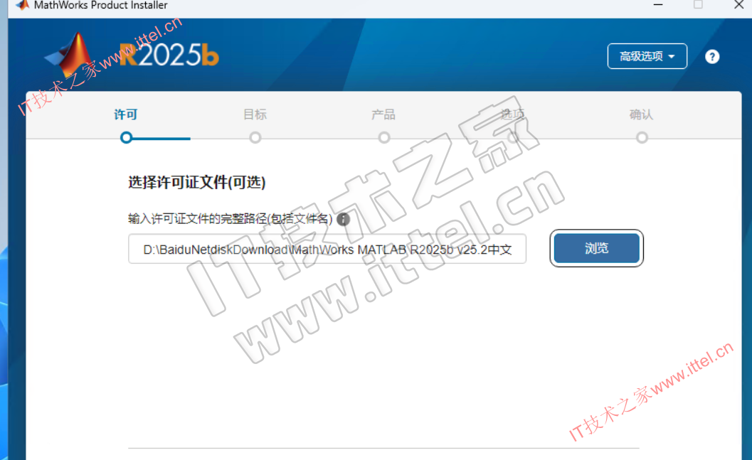 3.点击浏览,选择tercel文件夹下的ittel.lic,下一步