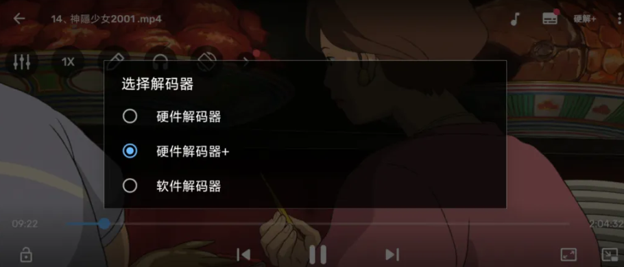 除了支持常见的倍速调节、横竖屏切换、后台播放、循环播放等功能外,这款播放器还自带了三种解码方式: