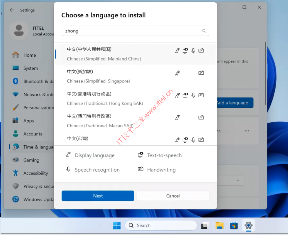 Tiny11 镜像默认仅提供了英文语言,如果需要使用简体中文(或繁体中文也类似),可以在安装完成之后手动添加。具体方法步骤如下: