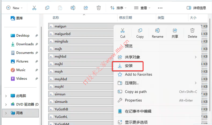 - 解压之后,按 Ctrl+A选择全部字体文件