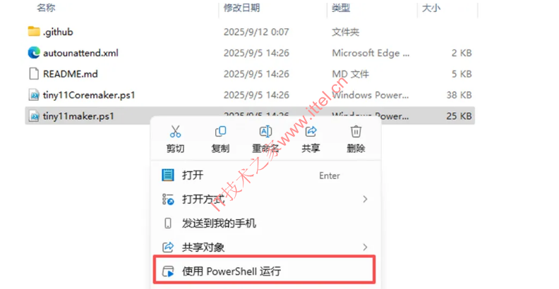 4、右键以终端管理员运行 tiny11maker.ps1