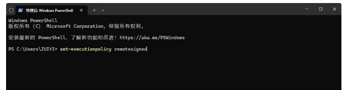 5、如果报错或者一闪而过,只需右键开始菜单打开终端管理员,输入以下命令给予其「允许执行脚本」的权限即可。