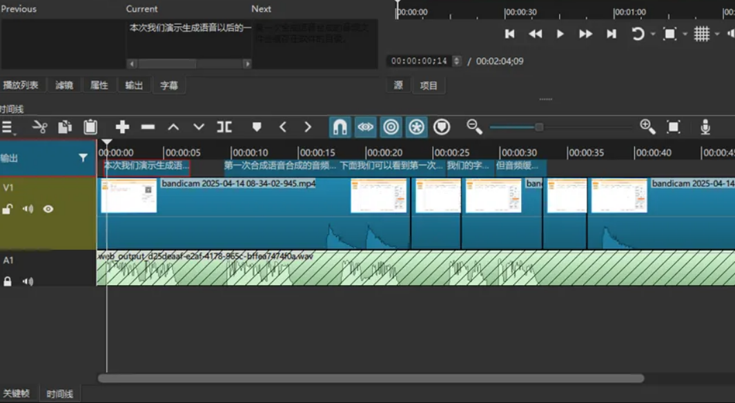 让人心动的是字幕现在能显示在时间线上了,这个字幕是从srt文件导入的。