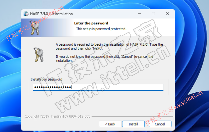 1、打开HASP 7.5.0文件夹,运行HASP 7.5.0 .exe,输入安装密码(见New Text Document.txt)