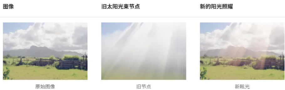 - Glare节点新增Sun Beams模式,操作简易超越独立节点,可快速生成高质量太阳光束效果。