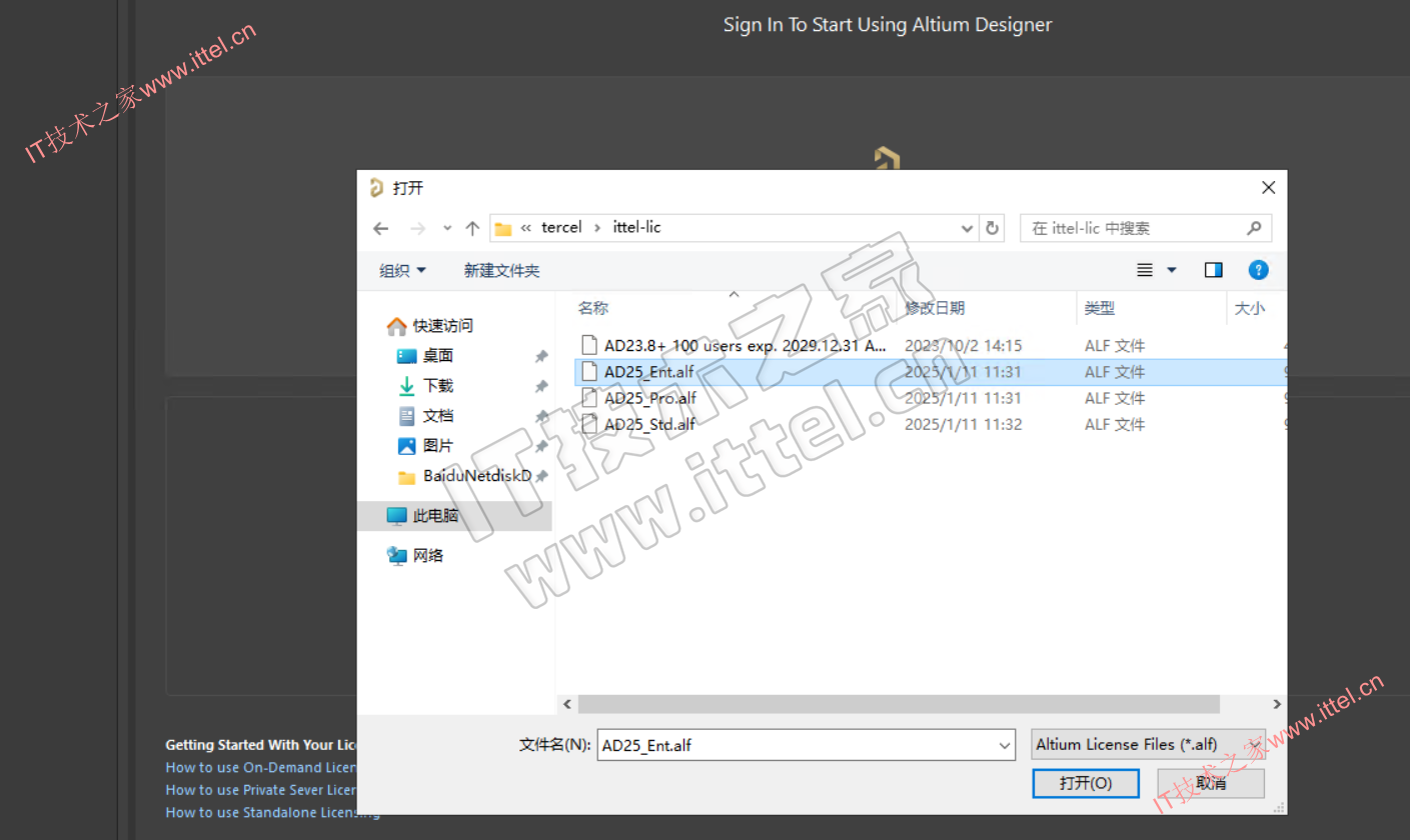 7、指向tercel文件夹ittel-lic下的的AD_Ent.alf文件