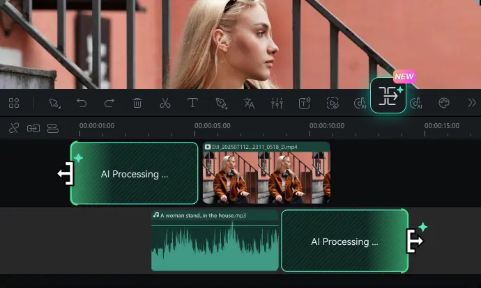• 无需网络的AI功能可以使用,如AI消除、人声美化、智能初剪、精准仿色等。