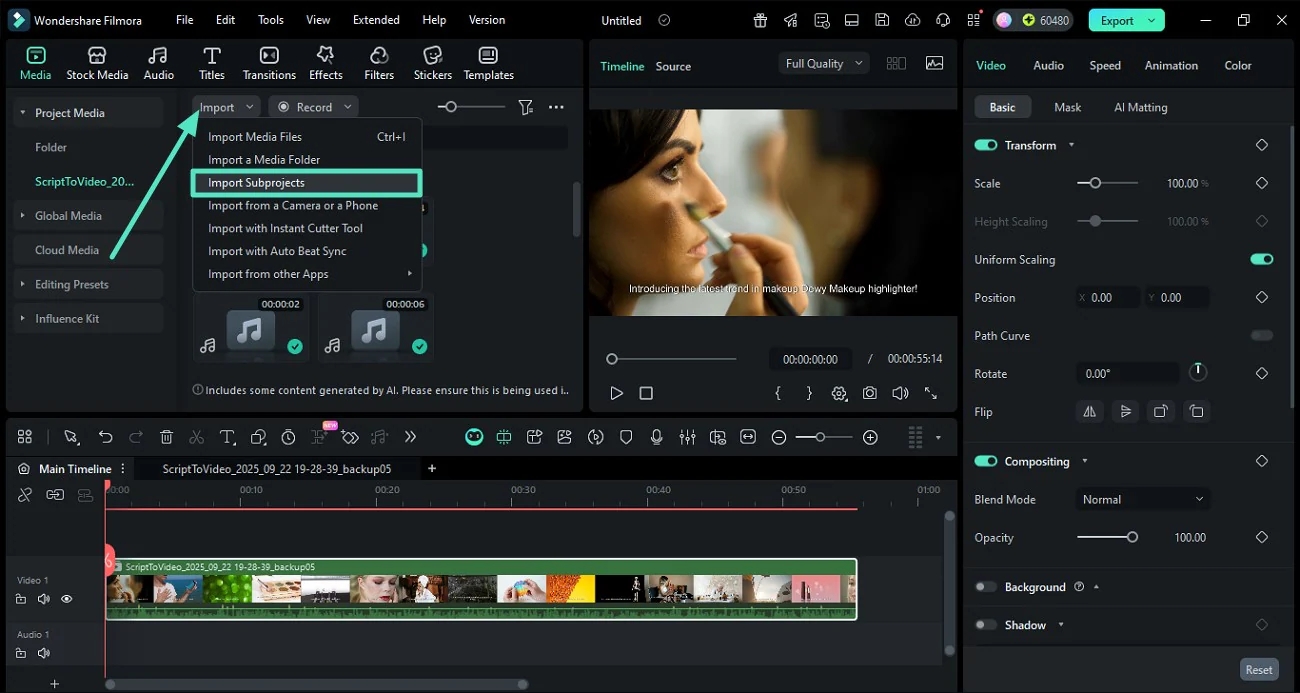 导入多个项目文件作为复合剪辑以支持多项目管理和跨项目材料重用。