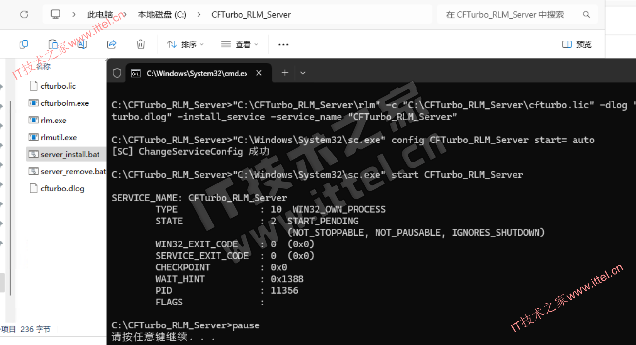 1、打开tercel文件夹,复制CFTurbo_RLM_Server文件夹到C盘,然后以管理员身份运行CFTurbo_RLM_Server\server_install.bat,等待服务启动