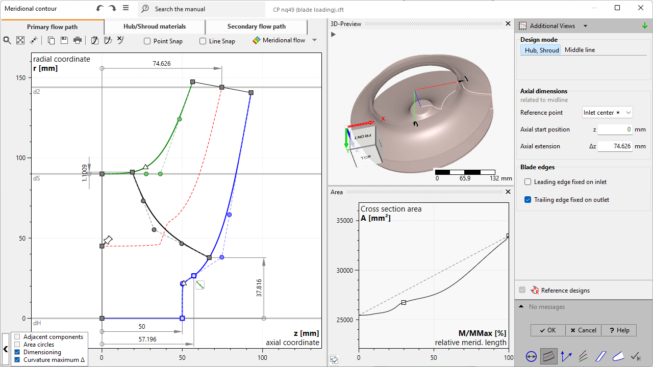 读取现有轮毂和护罩轮廓,包括主要尺寸的检测。 - 在Meridian视图中隐藏组件