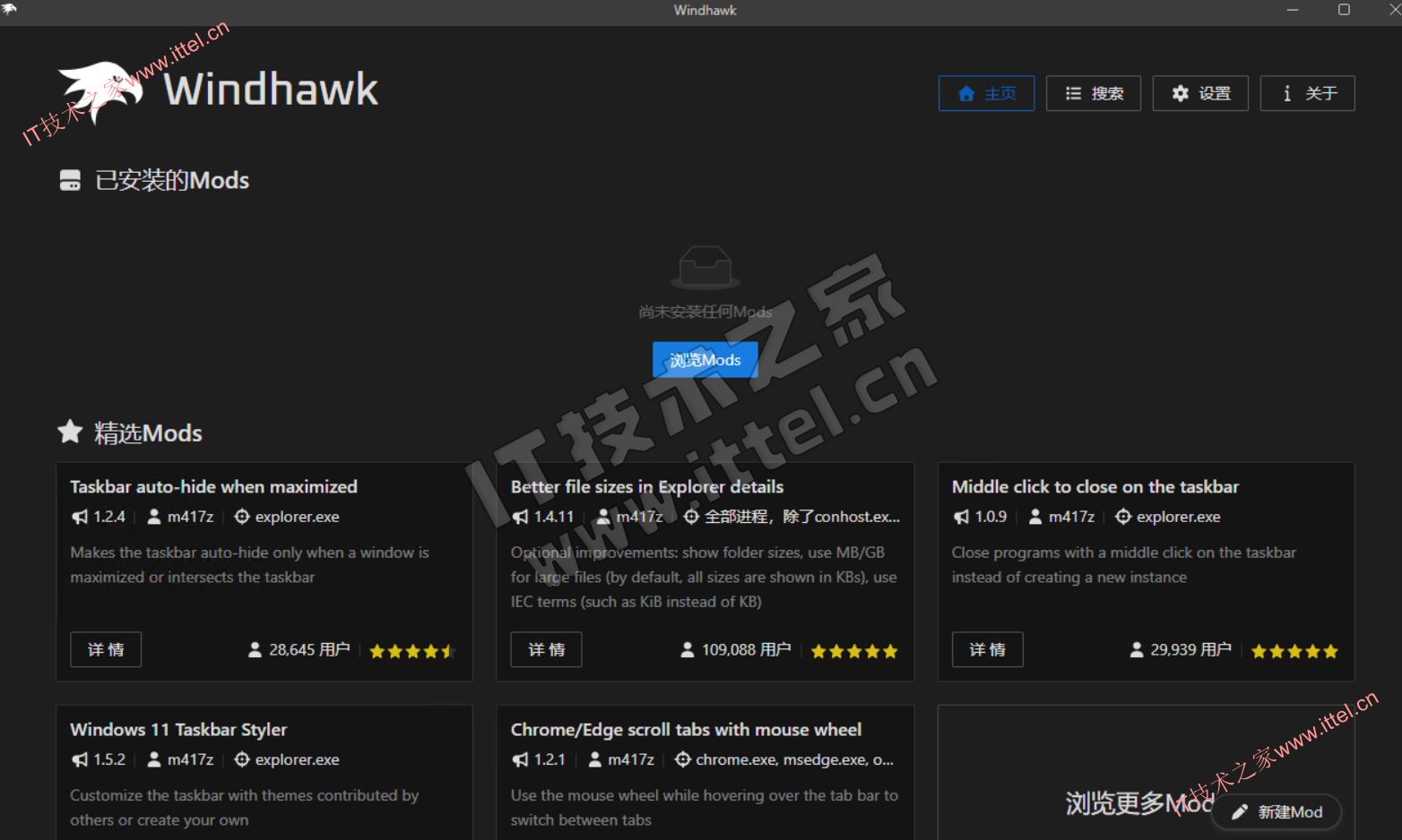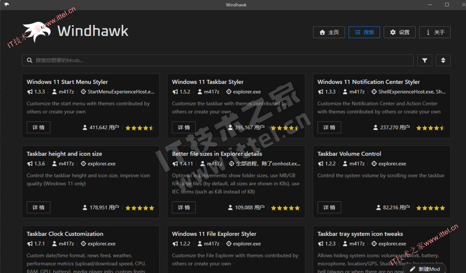 Windhawk 的操作门槛极低,内置丰富的插件市场,只需几步就能浏览、安装、管理各类 “模组”。并且里面的所有Mod都是免费开源的,没有任何限制。