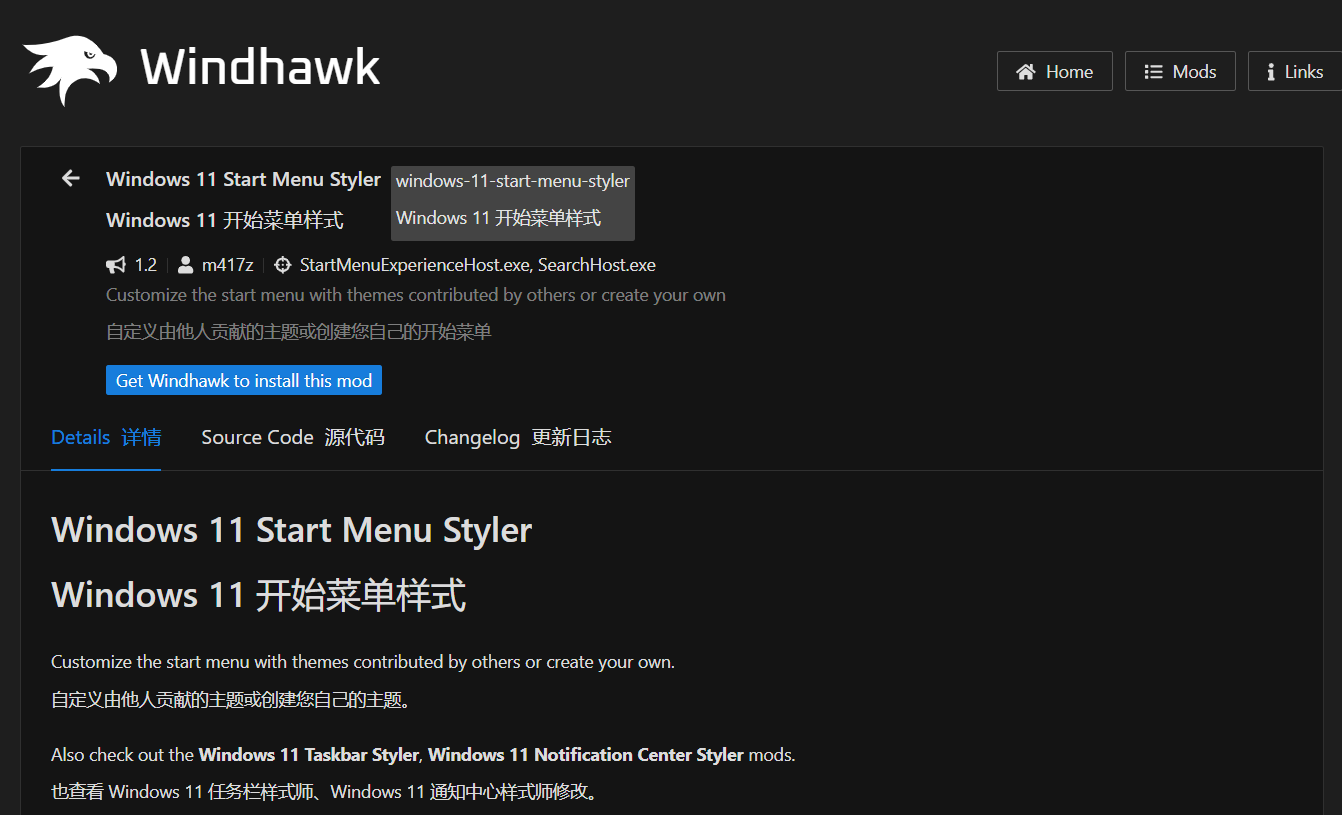 - Windhawk现在默认下载预编译的模组,而不是本地编译,从而显著加快安装和更新速度。此功能可在设置中关闭。