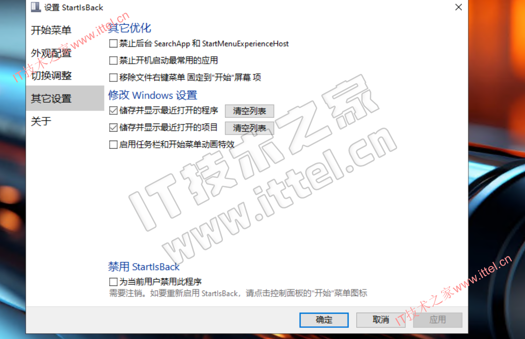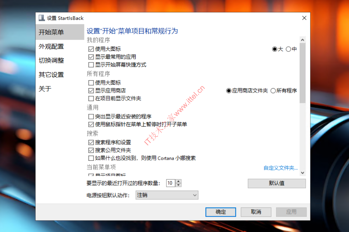 - StartIsBack 的自定义程度非常高,让我们可以自由配置开始菜单的各个项目和操作效果。