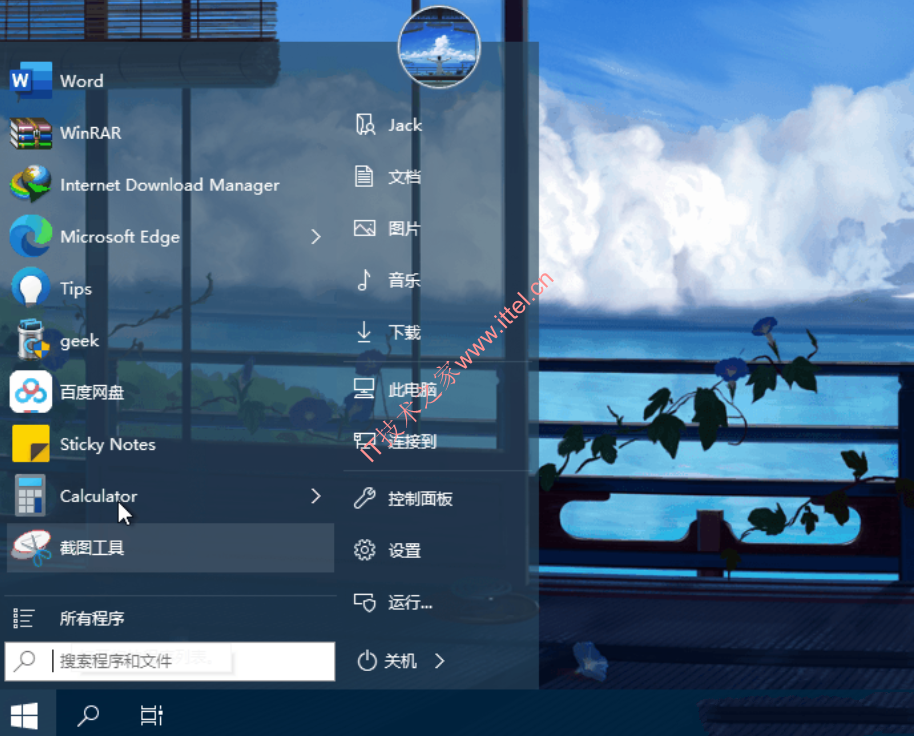- 并且可以自定义开始菜单、任务栏的颜色和透明度。