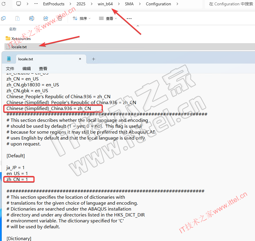 - 右击桌面【Abaqus】图标选择【打开文件所在的位置】,点击路径中的【win_b64】,依次打开【SMA】\【Configuration】\【locale.txt】