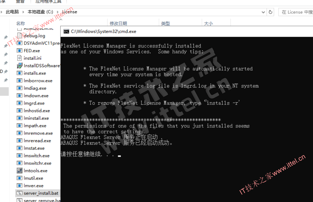 2、复制【License】文件夹到C盘然后打开,以管理员身份运行【server_install.bat】,直到界面提示成功