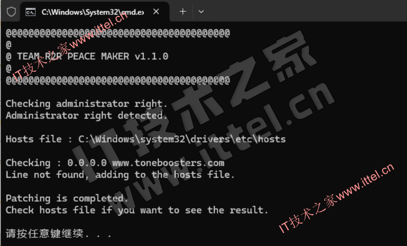 1、管理员身份运行【ToneBoosters_Hosts_Patch.cmd】