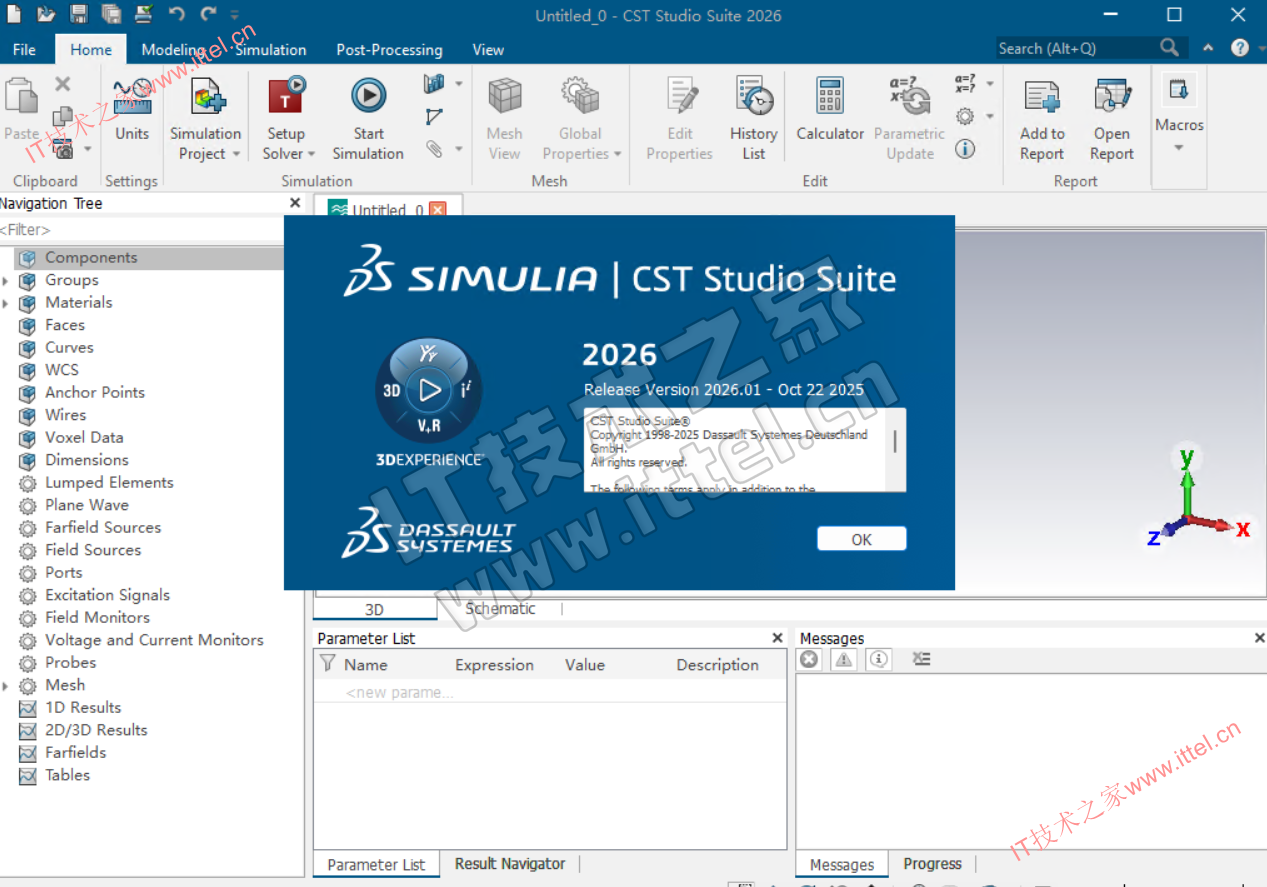 CST STUDIO SUITE 2026 是一款完整的电磁仿真软件,可用于设计、优化和分析微波、毫米波、射频、光学和低频电磁应用。提供了一整套强大的工具,支持各种电磁场仿真,例如三维电磁场、射线传播、散射、多孔介质、高斯波包等。此外,还具有时域仿真、频域仿真、辐射仿真、耦合仿真等功能。
