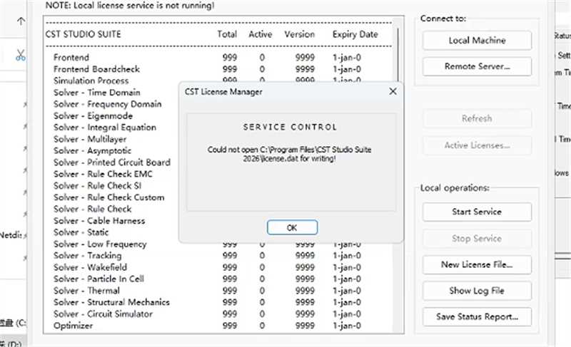 如果第12步提示:Could not open C:\Program Files\CST Studio Suite 2026\license.dat for writing!