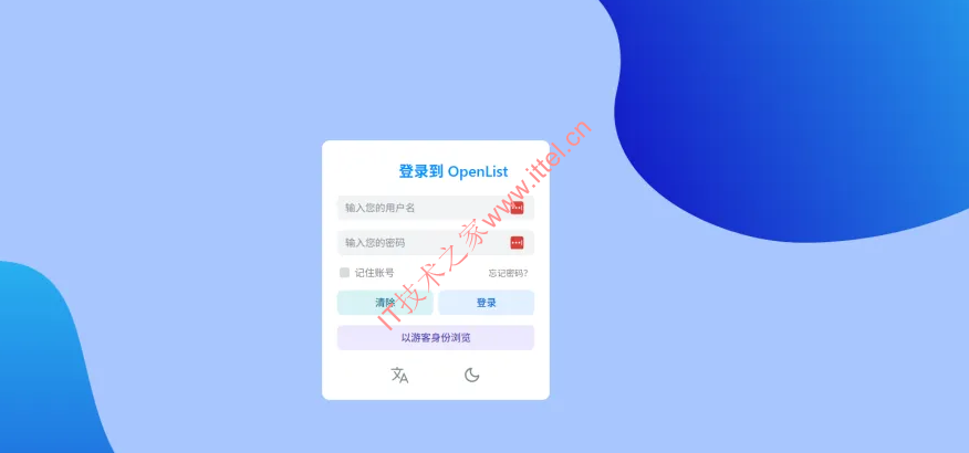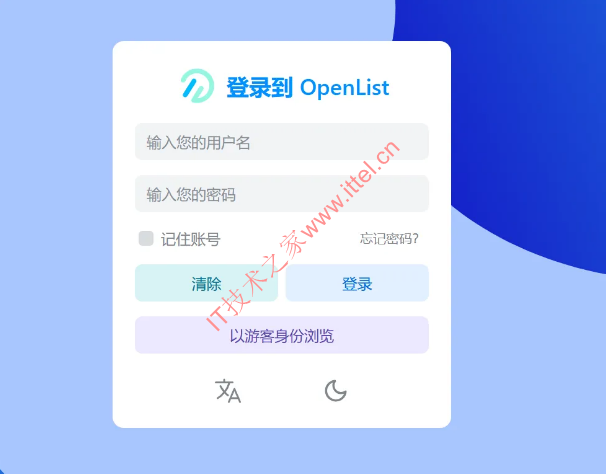 浏览器输入:http://IP地址:5244,可以看到openlist和alist的登录页面都是差不多的,只是图标、背景发生了变化。