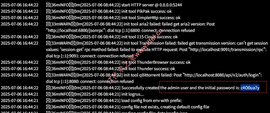 默认用户是admin,密码需要从容器日志获取。