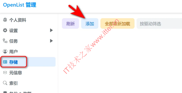 - 点左边栏的【存储】,然后【添加】