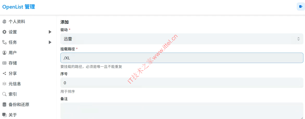 1、添加迅雷云盘稍微麻烦一点。我们到【存储】里“添加”,然后在“驱动”里选择“迅雷”,挂载路径自己定义,这里命名了XL,路径一定要加一个“/”,也就是填“/XL”