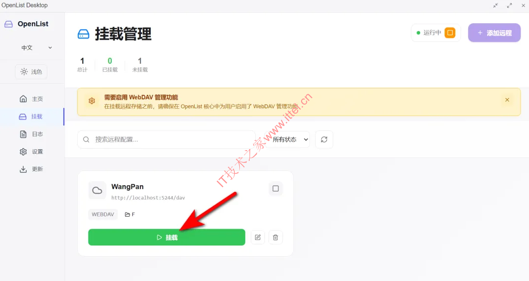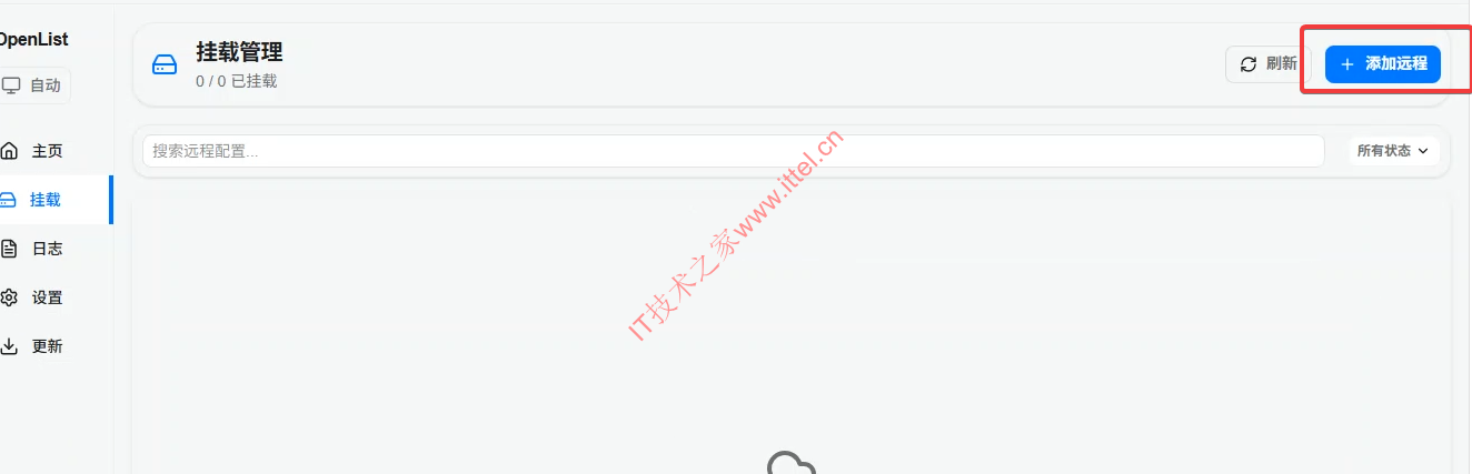 2、安装以后,我们到Openlist的软件中,点击【挂载】,然后点【添加远程】