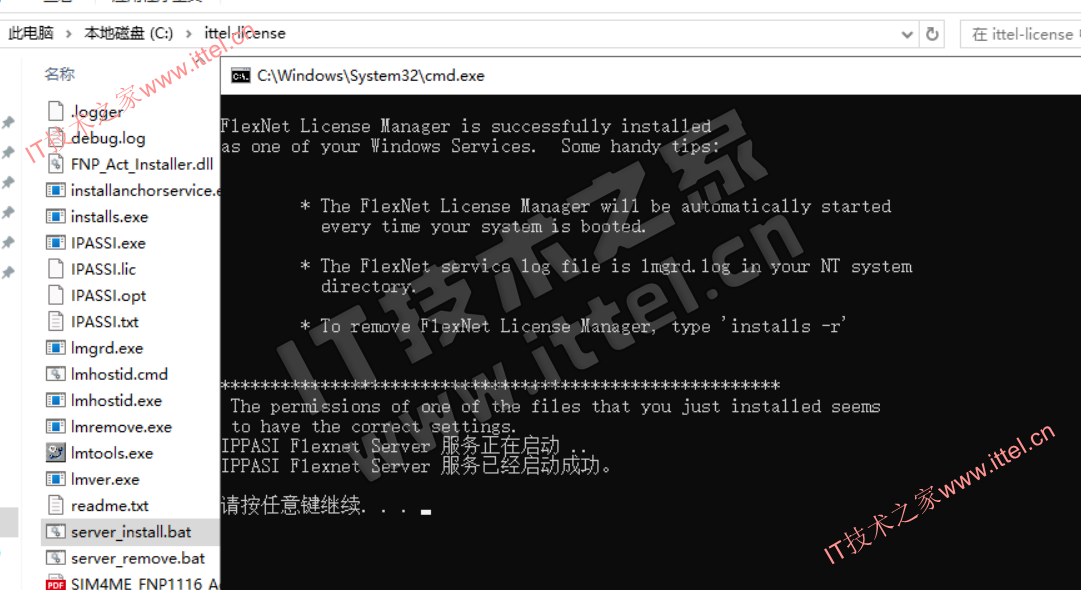 1、打开tercel,复制ittel-license文件夹到C盘,管理员身份运行server_install.bat,直到提示成功