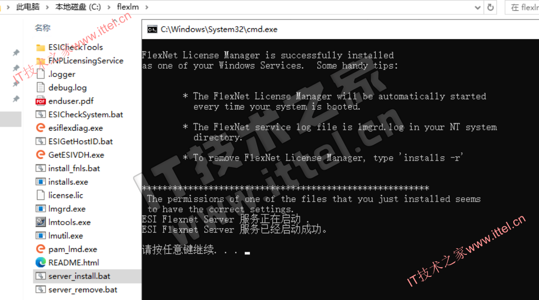 4、复制flexlm文件夹到C:\下替换然后打开,管理员身份运行server_install.bat,等待完成