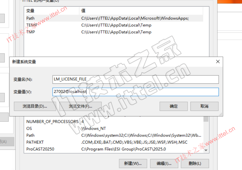 变量名:LM_LICENSE_FILE 变量值:27002@localhost
